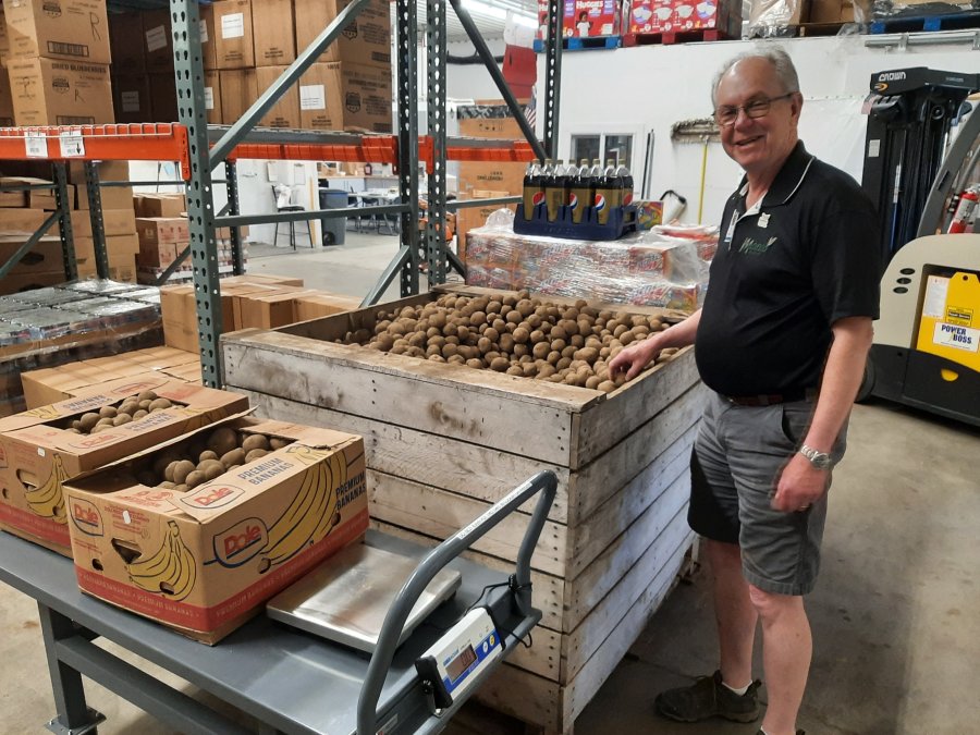 Like nearly every operation of any size, the Manna Food Project recycles a lot of cardboard: an average of roughly 11 tons of cardboard a year! But before they recycle boxes they use the better option “up the hierarchy” by reusing. Specifically, they reuse banana boxes to pack food bound for the 42 food pantries they serve. “Banana boxes to us are a commodity,” said Bob MacKenzie, Manna’s Rescue Program Manager.